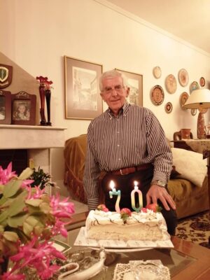 Αναρτώ και τα πειστήρια: μια φωτογραφία μου από την Αρχαία Ολυμπία, τόπο γέννησής μου, στις 25 Ιανουαρίου 1951 ( 1ο από τα 4 παιδιά του Αχιλλέα και της Βασιλικής Γεωργιάδη) και μερικές σημερινές με την τούρτα γενεθλίων του 2021 στο σπίτι μου, (λόγω περιορισμών κορωνοϊού) και μόνιμη κατοικία μου στην Ξάνθη, με την γυναίκα μου Τίνα και την πολύ αγαπημένη μοναχοκόρη μας Μίνα.