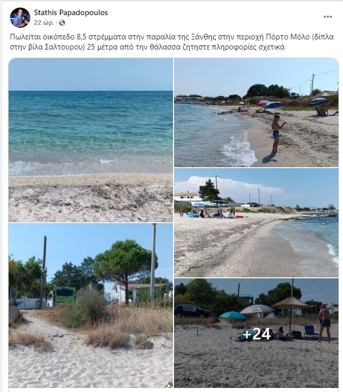 Πωλείται οικόπεδο 8,5 στρέμματα στην παραλία της Ξάνθης στην περιοχή Πόρτο Μόλο (δίπλα στην βίλα Σαλτουρου) 25 μέτρα από την θάλασσα πληροφορίες σχετικά 6943246177.