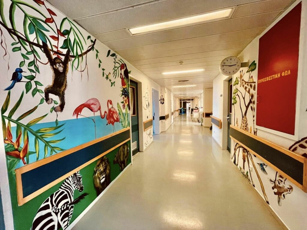 *Τους τελευταίους μήνες, οι λευκοί και ψυχροί τοίχοι στους διαδρόμους, τους θαλάμους νοσηλείας και τον παιδότοπο της κλινικής έχουν μεταμορφωθεί σε ζωγραφικούς πίνακες γεμάτους χρώμα, φαντασία και αγαπημένους παιδικούς ήρωες.