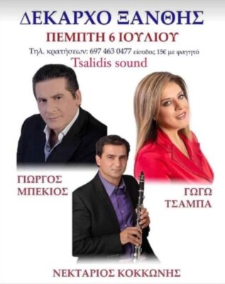 *Ένα παραδοσιακό γλέντι με ζωντανή μουσική διοργανώνεται στο Δέκαρχο Ξάνθης την Πέμπτη 6 Ιουλίου με τους Γωγώ Τσαμπά και τον Γιώργο Μπέκιο στο τραγούδι και τον Νεκτάριο Κοκκώνη στο κλαρίνο!