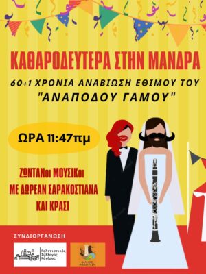 *ΚΑΘΑΡΟΔΕΥΤΕΡΑ στην Μάνδρα. Ιδού το κάλεσμα του Πολιτιστικού Συλλόγου Μάνδρας: