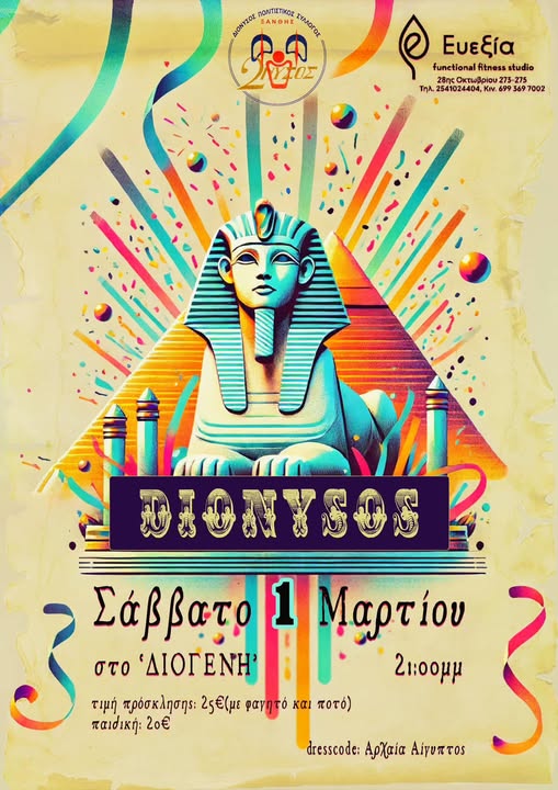 *Αποκριάτικο πάρτι “ΔΙΟΝΥΣΟΥ” 1 Μαρτίου 2025 στο ΔΙΟΓΕΝΗ στη Ξάνθη