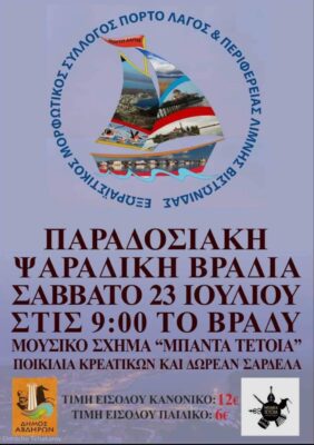 *Ψαράδικη εκδήλωση με οργανωτή τον Εξωραϊστικό Μορφωτικό Σύλλογος Πόρτο-Λάγος διοργανώνεται στις 23 Ιουλίου. Και αναλυτικότερα: