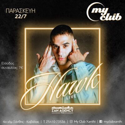 Σήμερα Παρασκευή 22 Ιουλίου ο γνωστός ράπερ Hawk Live στο MY CLUB