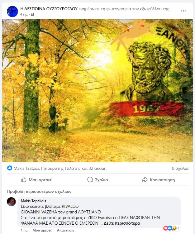 *Μια ωραία φωτογραφία δημοσίευσε στο fb η φανατική και ξεχωριστή ΑΟΞάρα Δέσποινα Ουζγούρογλου απεικονίζοντας μεγάλες παλιές εποχές (σ.σ. Επί Πανόπουλου φυσικ’α..) και ιδού και τα σχόλια που εισέπραξε: