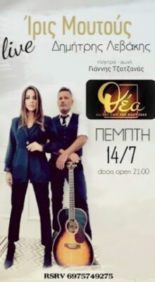 *Καλλιτεχνικό 2. Σήμερα Πέμπτη 14 Ιουλίου στις 21:00, το καφέ – μπαρ «Θέα» στην Πλατεία Αντίκα στην Ξάνθη, διοργανώνει άλλο ένα live με τους Ίρις Μούτους, Δημήτρη Λεβάκη και Γιάνη Τζατζανά.