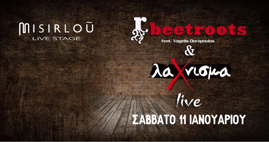 Το Σάββατο 11 Ιανουαρίου, οι ΒeetRoots παρέα με τους Λάχνισμα Υπόγειες Πρόβες και με Ροκ διάθεση, σε ένα πάντρεμα της Παραδοσιακής με την Ροκ μουσικής και όχι μόνο, με τον Βαγγέλης Δωρόπουλος στην γκάϊντα.