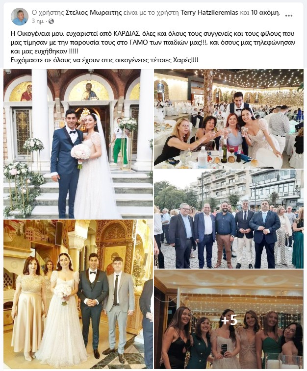 *«Η Οικογένεια μου, ευχαριστεί από ΚΑΡΔΙΑΣ, όλες και όλους τους συγγενείς και τους φίλους που μας τίμησαν με την παρουσία τους στο ΓΑΜΟ των παιδιών μας!!!, και όσους μας τηλεφώνησαν και μας ευχήθηκαν!!!