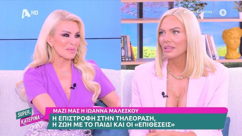*Η Κατερίνα Καινούργιου υποδέχτηκε στο πλατό της εκπομπής της, την Ιωάννα Μαλέσκου, το μεσημέρι της Παρασκευής 26 Απριλίου, με αφορμή την τηλεοπτική της επιστροφή.