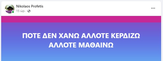 «ΠΟΤΕ ΔΕΝ ΧΑΝΩ ΑΛΛΟΤΕ ΚΕΡΔΙΖΩ ΑΛΛΟΤΕ ΜΑΘΑΙΝΩ»