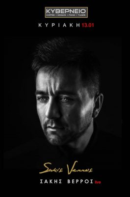 *Ποιος δεν τον ξέρει…και ποιος δεν έχει ονειρευτεί με τα τραγούδια του; Ο μοναδικός Σάκης Βέρρος λοιπόν αυτήν την Κυριακή 13 Ιανουαρίου (μετά τις 22.00) θα εμφανιστεί –που αλλού;- στο Κυβερνείο! Σπεύστε και κλείστε τραπέζι από τώρα…