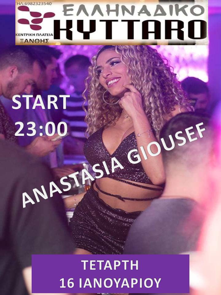 Αυτό μη τον χάσετε! Η φοβερή freestyle and oriental dancer Anastasia Giousef σήμερα για μία και μοναδική εμφάνιση στο ελληνάδικο KYTTARO! Το πρόγραμμα αρχίζει στις 23:00 και αναμένεται πολύ καυτό!