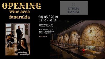 Υποδεχόμαστε το Καλοκαιράκι σ’ έναν ιδιαίτερο χώρο (wine area), με μια γευστική γνωριμία των κρασιών του Κτήματος Παυλίδη και με ένα μοναδικό Live (Χάρης Ξυλάς, Δήμος Σταθούλης, Ελσα Καριωτη… Σας περιμένουμε!!!!