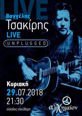 *Μη το χάσετε….Ο δημοφιλής συνθέτης και τραγουδιστής Βαγγέλης Τσακίρης σε μια unplugged βραδυά στο Αλχημείον Καφεζυθοποιείον στην Παλιά πόλη της Ξάνθης με Ελληνικές μπαλάντες έντεχνα και ροκ τραγούδια αλλά και με δικές του συνθέσεις, ταξιδεύει μουσικά όλους τους φίλους τους φίλους του, την Κυριακή 29 Ιουλίου στις 21.30!!!!!