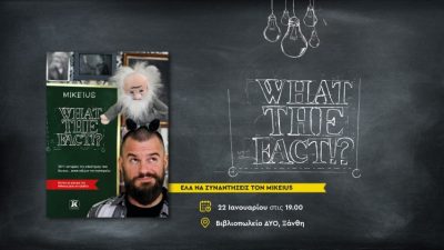 *Πολιτιστικό. Οι εκδόσεις Κλειδάριθμος και το βιβλιοπωλείο ΔΥΟ σας προσκαλούν να παρακολουθήσετε ομιλία του Mikeius με τίτλο «Η επιστήμη ως αντίδοτο στον τρόμο», με αφορμή την κυκλοφορία του βιβλίου του What the fact!? στο χώρο του βιβλιοπωλείου (Βενιζέλου 29, Ξάνθη) την Τετάρτη 22 Ιανουαρίου 2020 και ώρα 19.00.