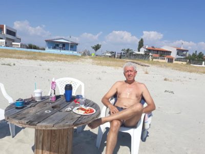 *Κι αφού το καλοκαίρι καλά κρατεί είπε να το εκμεταλλευτεί και ο οικονομικός επόπτης του ΕΒΕ Ξάνθης Σπύρος Κάλφας και την Κυριακή έκανε εξόρμηση στη θάλασσα όχι όμως μόνο για μπάνιο, αλλά πήγε οργανωμένος με τσιπουράκι και μεζέδες.