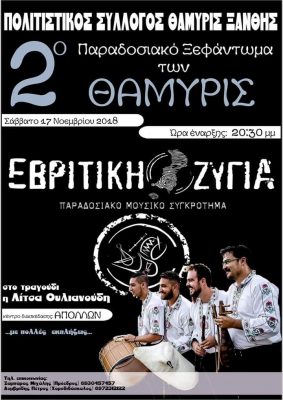 *Αυτό δεν πρέπει να το χάσει κανείς… Σαββατο 17 Νοεμβριου στον ΑΠΟΛΛΩΝ ο χορός του Πολιτιστικού συλλόγου ΘΑΜΥΡΙΣ με το συγκρότημα Εβρίτικη Ζυγιά!