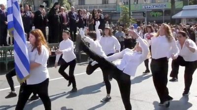Όλα έγιναν στην παρέλαση για την 28η Οκτωβρίου, όταν ομάδα αποτελούμενη από νεαρά κορίτσια έκανε παρέλαση αλά… Monty Python, θυμίζοντας το θρυλικό σκετς The Ministry of Silly Walks με τον Τζον Κλιτζ.