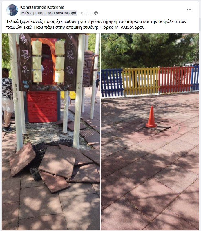 “Τελικά ξέρει κανείς ποιος έχει ευθύνη για την συντήρηση του πάρκου και την ασφάλεια των παιδιών εκεί;