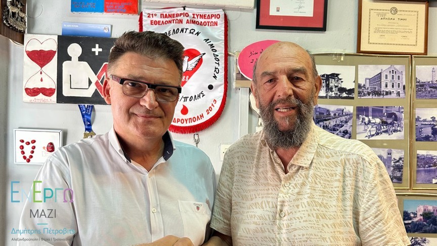 Τριάντα επτά χρόνια ως πρόεδρος του Συλλόγου Εθελοντών Αιμοδοτών Αλεξανδρούπολης, αγωνίζεται μαζί με το εκάστοτε Διοικητικό Συμβούλιο, με συνέπεια στην πρώτη γραμμή, προωθώντας την κοινωνική ευθύνη για την εθελοντική αιμοδοσία και τη δωρεά μυελού των οστών, ομφαλικού αίματος και οργάνων, με στόχο ο τόπος μας να καταστεί αυτάρκης σε αίμα, αλλά και να αυξηθούν οι μεταμοσχεύσεις οργάνων, δίνοντας συνέχεια στη ζωή!