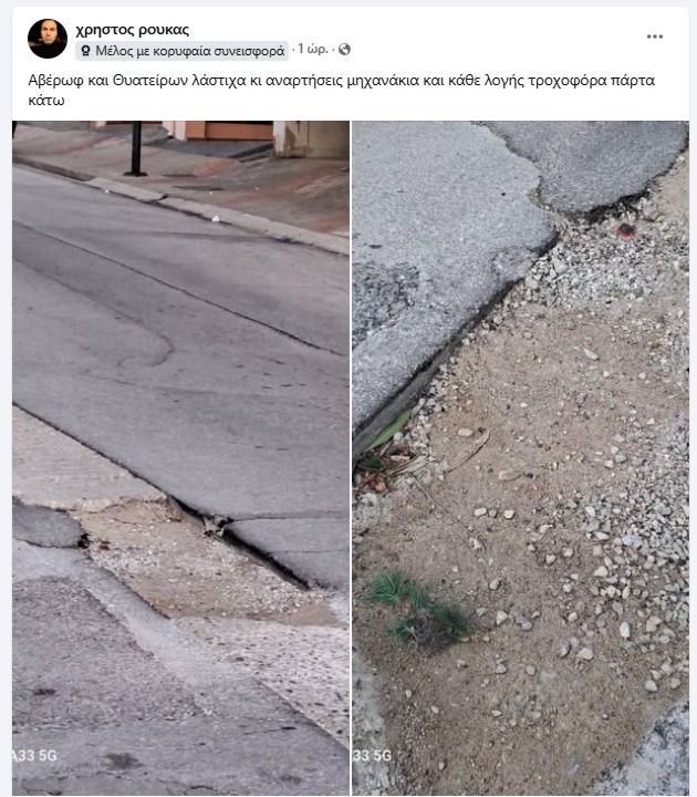 «Αβέρωφ και Θυατείρων λάστιχα κι αναρτήσεις μηχανάκια και κάθε λογής τροχοφόρα πάρτα κάτω», σχολιάζει σε ανάρτησή του στα «Στραβά και ανάποδα» στο Facebook ο Χρηστος Ρουκας!