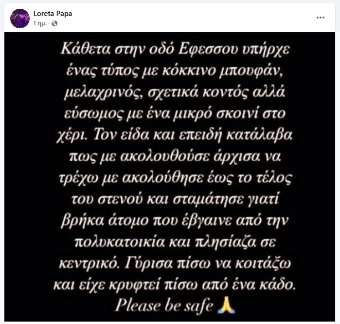 Η συνδημότισσα (;) LORETA PAPA με ανάρτησή της στο fb ανέφερε τα παρακάτω: