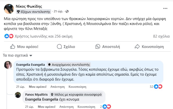 Μία ερώτηση προς τον υπεύθυνο των θρακικών λαογραφικών εορτών. Δεν υπήρχε μία όμορφη κοπέλα για βασίλισσα στην Ξάνθη, (Χριστιανή, ή Μουσουλμάνα δεν παίζει κανένα ρόλο), και φέρνετε την Κόνι Μεταξά;