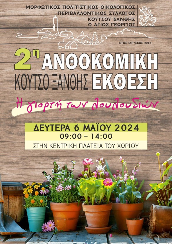 Μια μεγάλη γιορτή των λουλουδιών διοργανώνει και φέτος ο Μορφωτικός Πολιτιστικός Οικολογικός Περιβαλλοντικός Σύλλογος Κουτσού, «Άγιος Γεώργιος», τη Δευτέρα 6 Μαΐου.