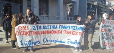 Πορεία των φοιτητών της Πολυτεχνικής Σχολής Ξάνθης χθες το πρωί, για τα ιδιωτικά πανεπιστήμια!