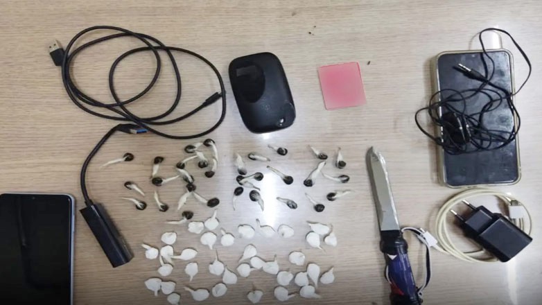 Συγκεκριμένα, βρέθηκαν και κατασχέθηκαν 17,5 γραμμάρια κοκαΐνης, σε 35 ισοβαρείς συσκευασίες και 14,4 γραμμάρια κάνναβης, σε 30 ισοβαρείς συσκευασίες. Όμως η έρευνα που έγινε σήμερα το πρωί παρουσία δικαστικού λειτουργού από αστυνομικούς της Ε.Κ.Α.Μ. και της Ο.Π.Κ.Ε. εντόπισε και αλλά ενδιαφέρονται ευρήματα, όπως φαίνεται και στο βίντεο που έδωσε στη δημοσιότητα η Ελληνική Αστυνομία. Ειδικότερα, ένα μαχαίρι, 2 κινητά τηλέφωνα, ένα Wi-Fi router και ένας φορτιστής, καλώδιο και ακουστικά hands free.