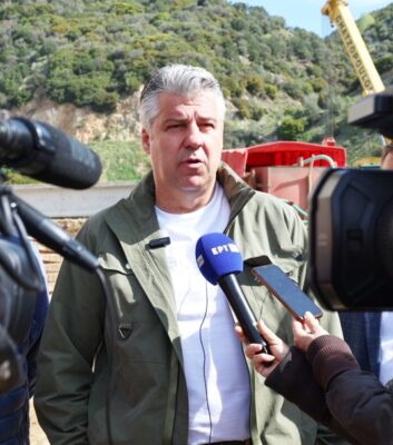 (Ο Περιφερειάρχης ΑΜΘ Χριστόδουλος Τοψίδης μετά την αυτοψία που έκανε στα υπό εξέλιξη έργα κατασκευής στη γέφυρα Κομψάτου και στη γέφυρα Κοσμίου)
