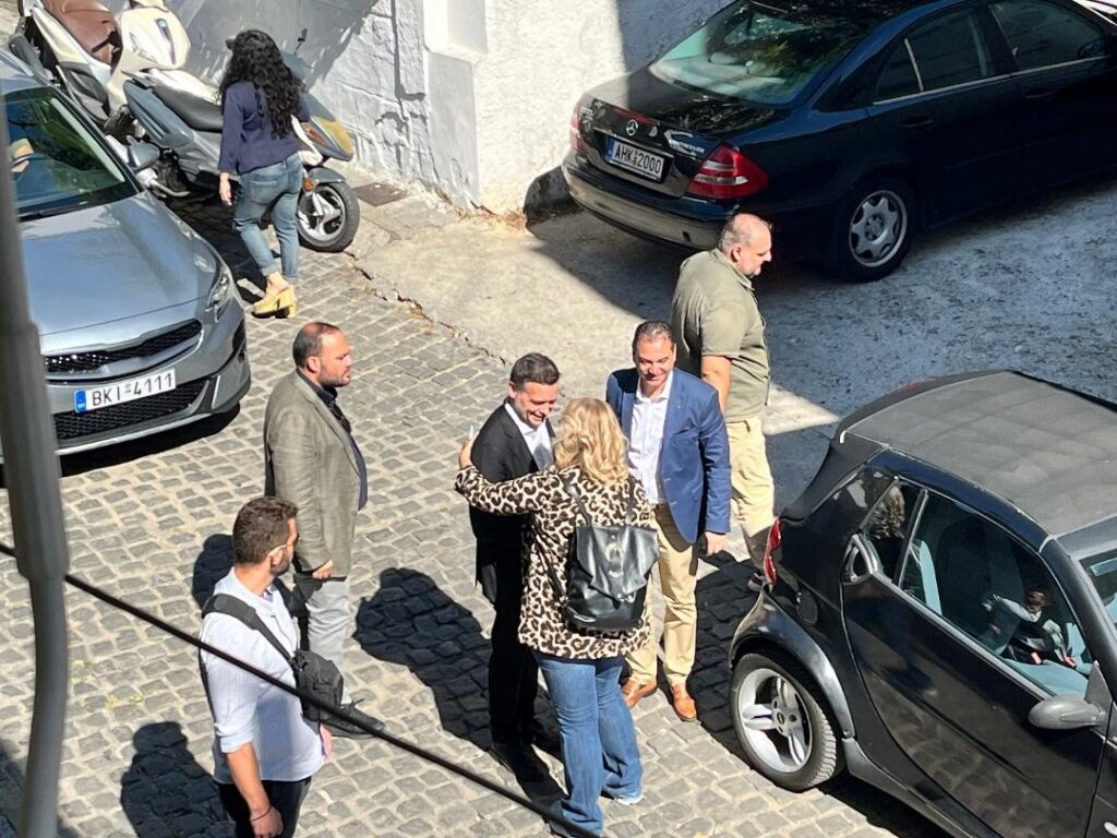 (στην οδό Στογιαννίδη) τον Δήμαρχο Αθηναίων και υποψήφιο πρόεδρο του ΠΑΣΟΚ, Χάρη Δούκα!