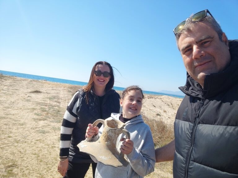 Εννιάχρονη μαθήτρια Δημοτικού βρήκε τμήμα αρχαίου αμφορέα στην παραλία Μολυβωτής της αρχαίας Στρύμης Ροδόπης!