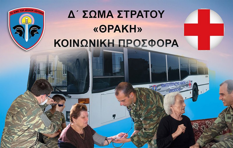Ανακοινώνεται, ότι την Πέμπτη 21 Μαρτίου 2024, στρατιωτικό ιατρικό κλιμάκιο του Δ΄ Σώματος Στρατού αποτελούμενο από Πνευμονολόγο και Νευρολόγο, θα επισκεφτεί το Κέντρο Υγείας Σταυρούπολης της ΠΕ Ξάνθης, από 09:00Ω έως 13:00 Ω, για δωρεάν υγειονομικές εξετάσεις των κατοίκων.