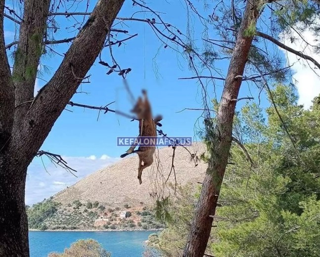Το ζώο πρώτα πυροβολήθηκε και μετά σταυρώθηκε και κρεμάστηκε στο δέντρο αφού της έκοψαν την ουρά.