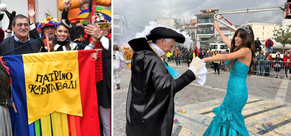 Η φετινή Βασίλισσα του Πατρινού Καρναβαλιού 2024 Γεωργία Σακκά με τον εκεί Δήμαρχο Πατρέων. Εγώ προτείνω στον ανεψιό Τσέπελη να φέρει για βασίλισσα στο Καρναβάλι του 2024 το… περσινό μοντέλο Ασκαρίδη – Φανουράκη – Φένιας (2023), για να ολοκληρώσει τη μαθητεία χορών ο θείος!