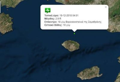 Σεισμική δόνηση σημειώθηκε το πρωί της Τρίτης 18 Δεκεμβρίου στο νησί του Έβρου.