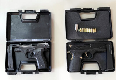 Ειδικότερα, στο πλαίσιο στοχευμένων δράσεων για την καταπολέμηση της παράνομης οπλοκατοχής, οι αστυνομικοί πραγματοποίησαν έρευνες στις οικίες των δραστών, όπου εντόπισαν και κατέσχεσαν δύο (2) πιστόλια κρότου και δέκα (10) αβολίδοτα φυσίγγια.