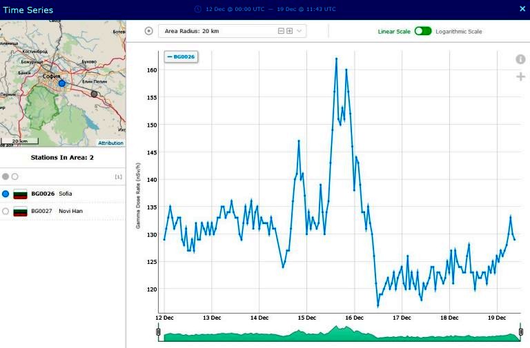 Σε «στατιστικές διακυμάνσεις» ή σε «εξωτερικές παραμέτρους», όπως «η βροχή η οποία οδηγεί σε αύξηση των επιπέδων της φυσικής ραδιενέργειας», αποδίδει η Ελληνική Επιτροπή Ατομικής Ενέργειας την ξαφνική αύξηση των τιμών που καταγράφηκε από το Windy στις 14 Δεκεμβρίου στην νότια Βουλγαρία, κοντά στα σύνορα με την Ελλάδα, αλλά και από το Ευρωπαϊκό δίκτυο EURDEP (European RadiologicalData Exchange Platform, https://remon.jrc.ec.europa.eu/About/Rad-Data-Exchange), στο οποίο παρατηρείται απότομη αύξηση ραδιενέργειας την 15η Δεκεμβρίου, ενώ στην συνέχεια, την επόμενη ημέρα, 16 Δεκεμβρίου, οι τιμές πέφτουν κατακόρυφα.