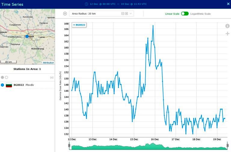 Υπερβολικά αυξημένες τιμές ραδιοακτινοβολίας μετρήθηκαν ξαφνικά, το βράδυ της 14ης Δεκεμβρίου, στη νότια Βουλγαρία, κοντά στα σύνορα με την Ελλάδα. Τις μετρήσεις κατέγραψε η ειδική υπηρεσία της διαδικτυακής πλατφόρμας Windy, η οποία εκτός από τις γνωστές πληροφορίες για τον καιρό, προσφέρει και ειδικές υπηρεσίες.