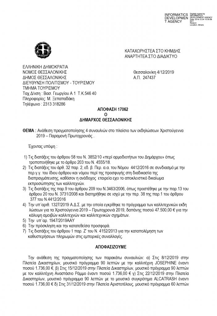 Ιδού και η απόφαση του Δήμου Θεσσαλονίκης