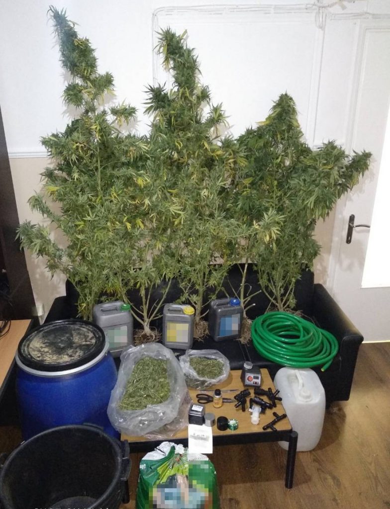 Από το χώρο της φυτείας βρέθηκαν και εκριζώθηκαν 5 δενδρύλλια κάνναβης, ύψους από 1,7 έως 2 μέτρων καθώς επίσης βρέθηκε πλήθος αντικειμένων που σχετίζονται με την καλλιέργεια κάνναβης (σύστημα αυτόματου ποτίσματος, πλαστικά δοχεία με υγρό λίπασμα, γλάστρες, συσκευασία με φυτόχωμα κ.α.).