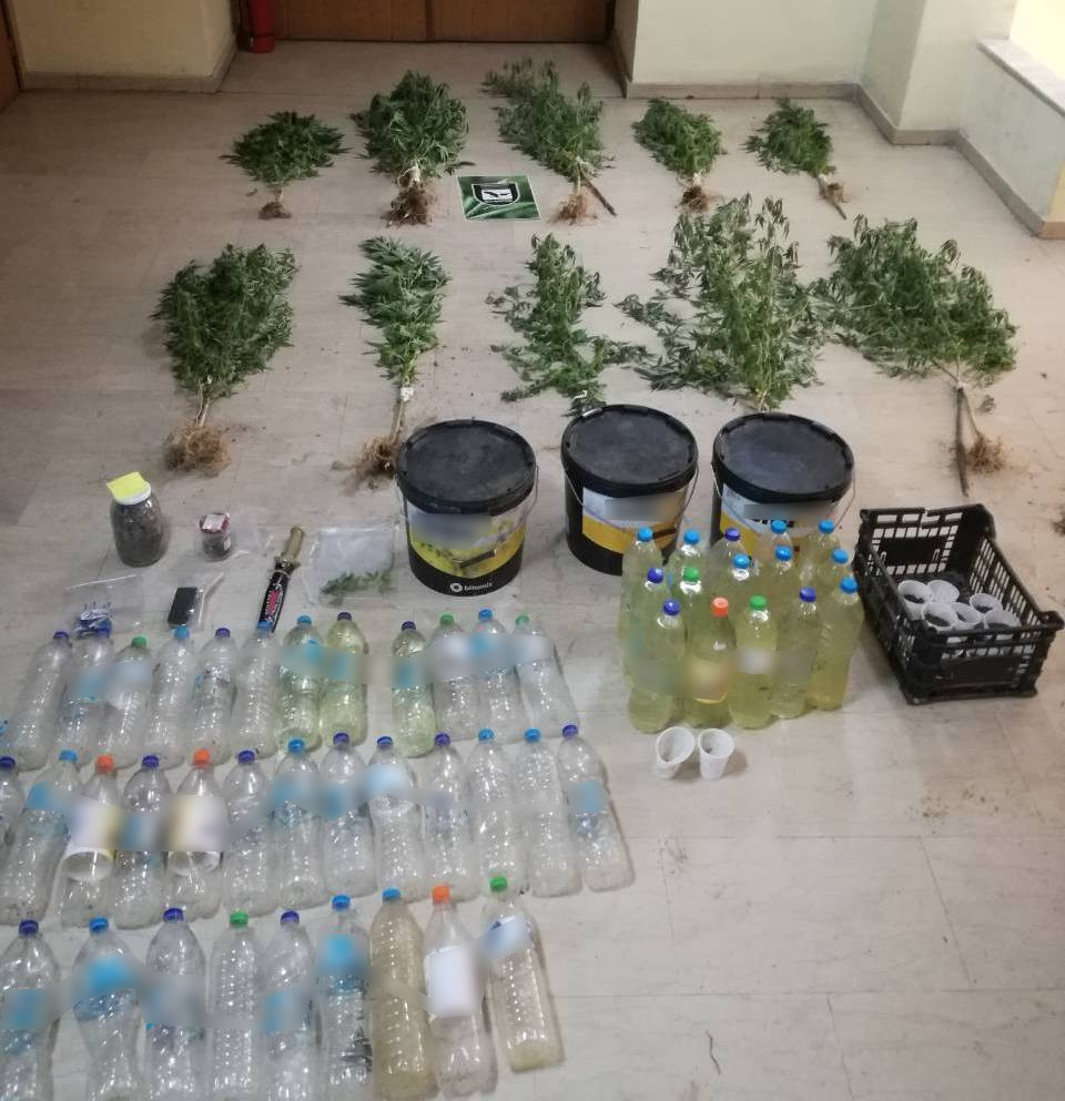 Κατασχέθηκαν μεταξύ άλλων 13 δενδρύλλια κάνναβης, 84 γραμμάρια ακατέργαστης κάνναβης και σπόροι κάνναβης