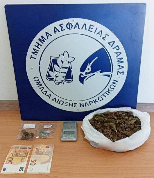 Στη δεύτερη περίπτωση, την ίδια ημέρα το μεσημέρι στη Δράμα, αστυνομικοί της Ομάδας Δίωξης Ναρκωτικών του Τμήματος Ασφάλειας Δράμας έπειτα από κατάλληλη αξιοποίηση πληροφοριών για διακίνηση ναρκωτικών ουσιών στην ευρύτερη περιοχή της Δράμας, συνέλαβαν έναν ημεδαπό, διότι σε έρευνα που διενεργήθηκε στην οικία του με τη συνδρομή του αστυνομικού σκύλου ανίχνευσης ναρκωτικών «VERA» της ίδιας υπηρεσίας και στην κατοχή του βρέθηκαν συνολικά και κατασχέθηκαν ποσότητες ακατέργαστης κάνναβης συνολικού βάρους 281,5 γραμμαρίων, μία ηλεκτρονική ζυγαριά ακριβείας, χρηματικό ποσό και ένα κινητό τηλέφωνο.