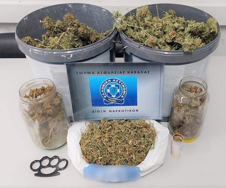 Στη τρίτη περίπτωση, την 4-11-2024 το πρωί σε οικισμό της Καβάλας, αστυνομικοί της Ομάδας Δίωξης Ναρκωτικών του Τμήματος Ασφάλειας Καβάλας συνέλαβαν έναν ημεδαπό, διότι εντόπισαν και κατέσχεσαν από την οικία του και παρακείμενα σημεία αυτής, που χρησιμοποιούσε ως χώρους απόκρυψης ναρκωτικών ουσιών, πέντε δοχεία και μία νάιλον συσκευασία με ακατέργαστη κάνναβη, συνολικού βάρους 1 κιλού και 435,66 γραμμαρίων και μία σιδερογροθιά.