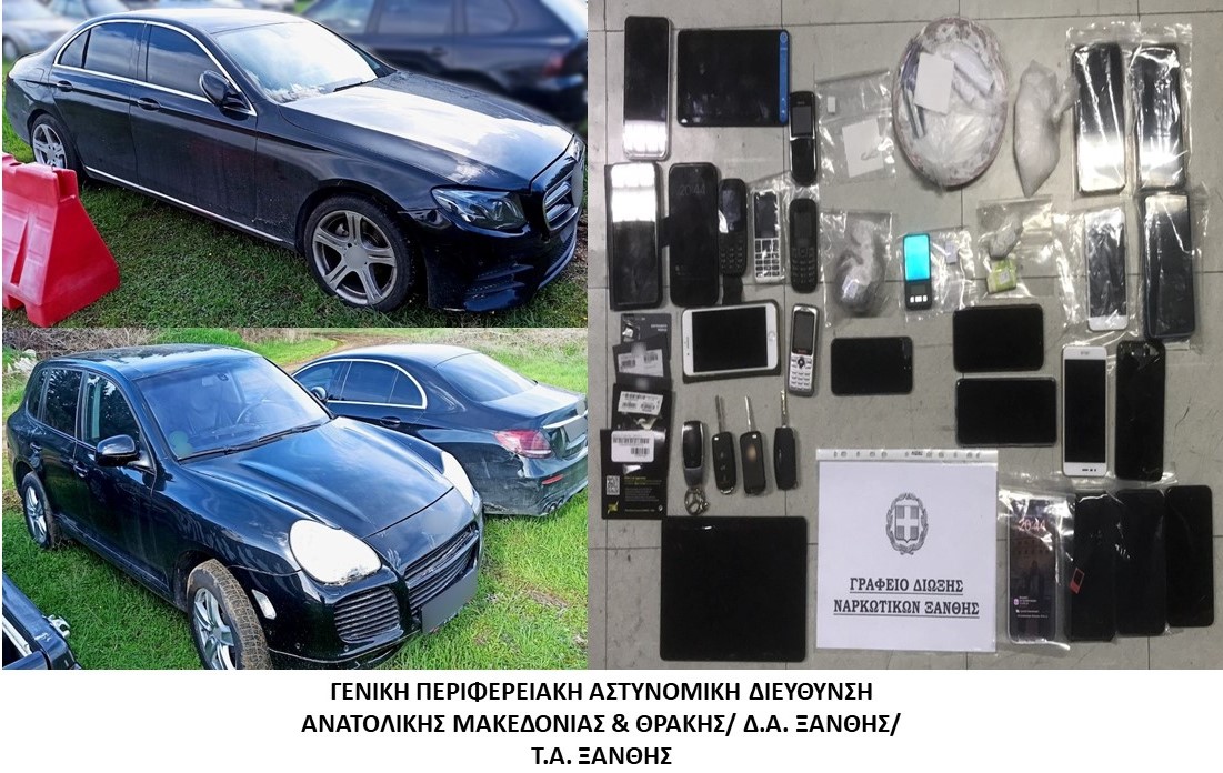 Ειδικότερα, μετά από κατάλληλη αξιοποίηση πληροφοριών σχετικά με μεταφορά, αποθήκευση και διακίνηση ναρκωτικών ουσιών στην ευρύτερη περιοχή της Ξάνθης, πραγματοποιήθηκε οργανωμένη επιχείρηση, κατά τη διάρκεια της οποίας οι αστυνομικοί συνέλαβαν τους δράστες, διότι σε έρευνες που πραγματοποίησαν σε 11 οικίες εντόπισαν και κατάσχεσαν συνολικά 4 οχήματα ως μέσα τέλεσης αξιόποινων πράξεων, 22,3 γραμμάρια ακατέργαστης κάνναβης, μικροποσότητα κοκαΐνης, 23 συσκευές κινητών τηλεφώνων, 1 ηλεκτρονική ζυγαριά, 1 φορητό υπολογιστή, 1 tablet και 220 γραμμάρια σκόνη αγνώστου συστάσεως.