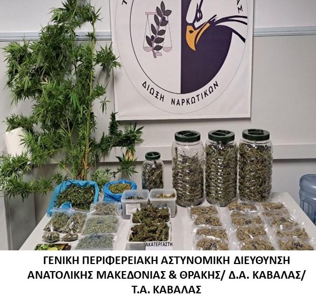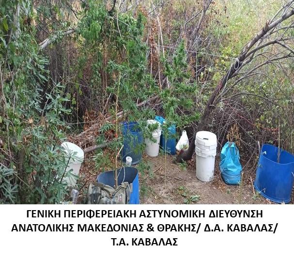Στη δεύτερη περίπτωση, το μεσημέρι σε οικισμό της Καβάλας, αστυνομικοί του Τμήματος Ασφάλειας Καβάλας συνέλαβαν τον δεύτερο δράστη, διότι εντόπισαν επιμελώς κρυμμένα στην οικία του και σε δύσβατη περιοχή πλησίον αυτής και κατάσχεσαν: