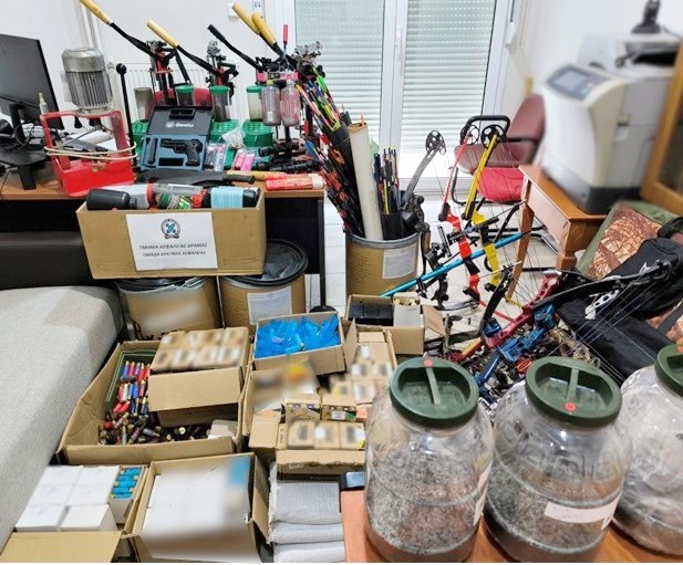 Αναλυτικότερα, στο πλαίσιο στοχευμένης αστυνομικής δράσης για την αντιμετώπιση της παράνομης διακίνησης πυροβόλων όπλων και πυρομαχικών και έπειτα από αξιοποίηση πληροφοριών, οι ανωτέρω αστυνομικοί πραγματοποίησαν έλεγχο σε κατάστημα εμπορίας κυνηγετικών ειδών, κατά τη διάρκεια του οποίου κατελήφθη ο ένας ημεδαπός δράστης (ιδιοκτήτης του καταστήματος) να προβαίνει σε παράνομη γόμωση κυνηγετικών φυσιγγίων για εμπορία, χωρίς άδεια από την αρμόδια Αρχή, έχοντας εγκαταστήσει για τον σκοπό αυτό στο κατάστημα κατάλληλο υλικοτεχνικό εξοπλισμό.