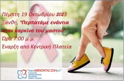 Ο Σύλλογος Καρκινοπαθών και Φίλων Ν.Ξάνθης “Παραμένοντας ΖΩΗΡοι” διοργανώνει και φέτος ποικίλες εκδηλώσεις.