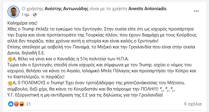 -Sorry Ανέστη, αλλά λύσε πρώτα τα εγχώρια προβλήματα, πολιτικά, δημοτικά και τοπικά και μετά… λύνεις και το πρόβλημα της… Γροιλανδίας και του Τράμπ!».
